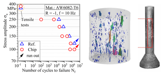 Aufgrund der zunehmenden Ressourcenknappheit werden Forderungen hinsichtlich eines energieeffizienten Recyclings für Aluminium immer größer. Das direkte Solid-State-Recycling von Al-Spänen verspricht im Vergleich mit herkömmlichen wiederaufschmelzenden Recyclingverfahren eine signifikante Energieeinsparung bei gleichzeitiger Reduzierung des Materialverlusts durch Abbrand. Ein neuer, innovativer Ansatz zum Solid-State-Recycling ist das Spark-Plasma-Sintering (SPS). Die Anwendung des SPS-Prozesses ermöglicht eine vollständige Verschweißung der Späne und lässt somit deutlich optimierte Materialkennwerte erwarten. Das grundlegende Ziel dieses Forschungsvorhabens ist es auf Grundlage des SPS den Einfluss von Oxidschichten auf die resultierenden Bauteileigenschaften Solid-State-recycelter Späne zu untersuchen. Die angedachte Prozesskette, bestehend aus Kaltpressen, SPS und Kaltfließpressen soll die Erzeugung von homogenen und porenfreien Bauteilen garantieren. Die prozessbedingten mikrostrukturellen Eigenschaften der Proben werden mit den mechanischen Eigenschaften korreliert, wodurch eine strukturbasierte Analyse der Schädigungsmechanismen erfolgt, deren Verständnis zur Auslegung optimaler Prozessbedingungen zwingend erforderlich ist.